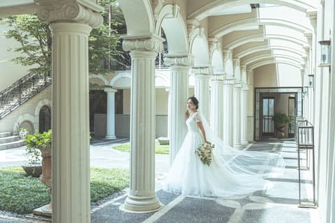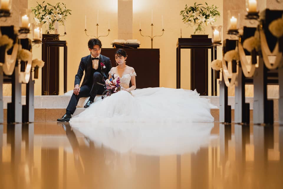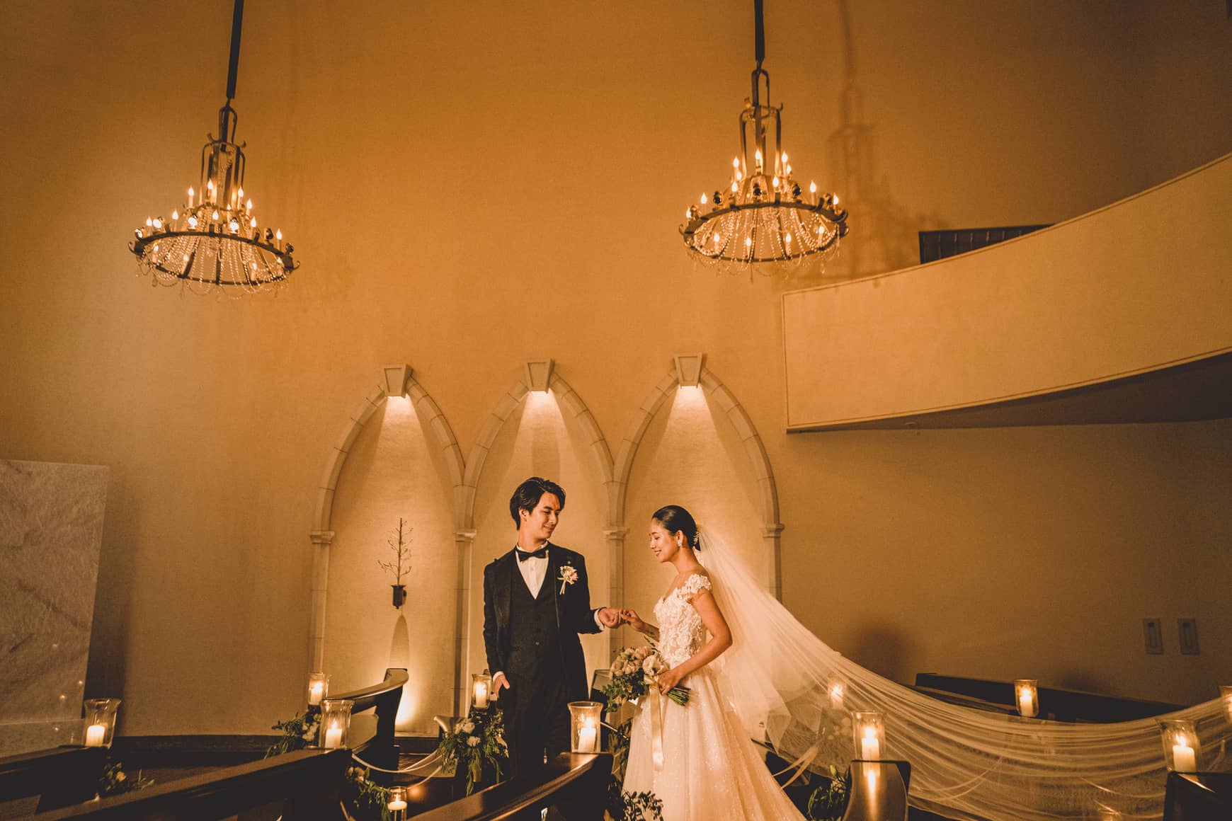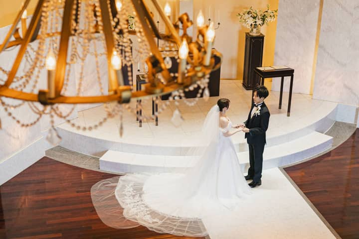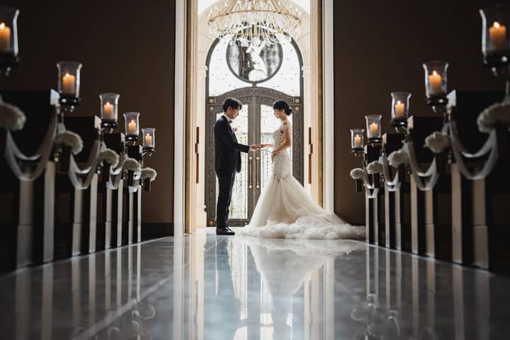 大理石でできた輝くバージンロードに映るおふたりのシルエットや、5mの大きな扉から差し込む光を生かしたお写真をお撮りいただけます。